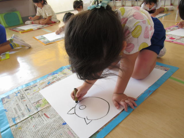 今回はいつも先生から読んでもらっているお気に入りの絵本を題材に絵を描きました!