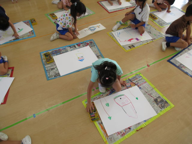 もり組もいけ組も絵本の中の世界のイメージを広げいつもとは違ったお絵描きになりました。