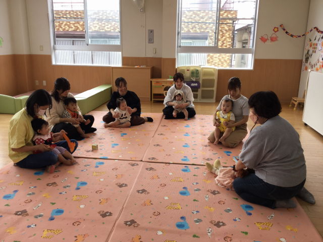 ききみみずきんのおはなしの会では、絵本の読み聞かせやふれあい遊びをして楽しみました。