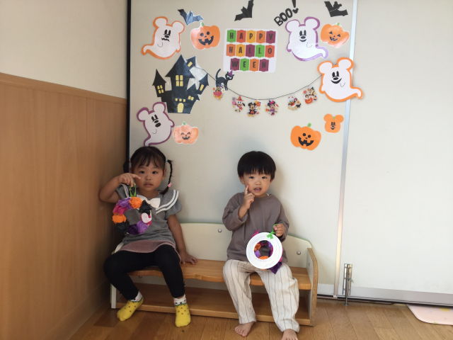 ママと一緒に作ったカボチャのおばけ、大切に持っていましたね!