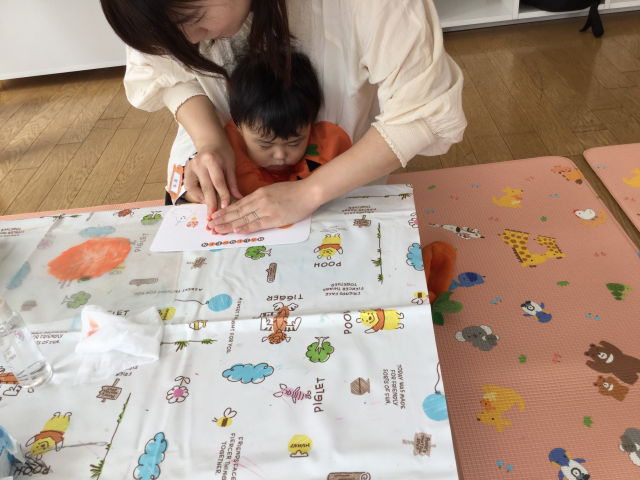 赤・青・黄色をよく考えてママと一緒に楽しみました!