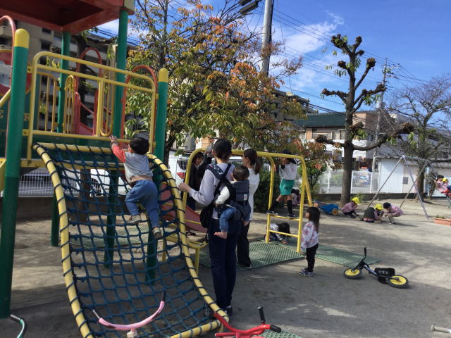 幼稚園のお兄さんお姉さんも小さいお友達に興味津々♪一緒に遊んで仲良くなりました!また遊びに来てくださいね♪
