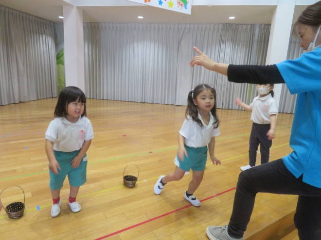 「石ころ道はケンケンケン♪ ケンパッ ケンパッ~♪」と歌に合わせてケンケンパをしようとする姿に注目です! あたたかく応援してあげてくださいね。