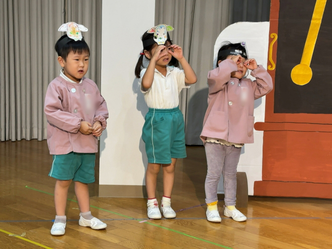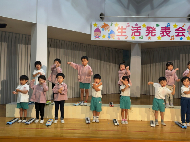 2025.10.16 その他 生活発表会(教育部)までの道のり2 発表会まであと3日! 「もっとやりたい!」「発表会楽しみ♡」と歌やダンスが大好きになった子どもたちです。 年少組 リズム劇『おおかみと7ひきのこやぎ』年中組 鍵盤ハーモニカ『きらきら星』と歌『山の音楽家』 前へ 一覧
