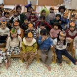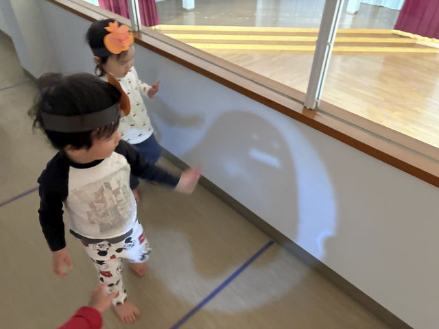 パーティーでは、お面をつけて「キャンディー拾い」「おばけちゃん綱引き」「おばけ探検」など、いろいろなゲームやおばけ探検を楽しみました。