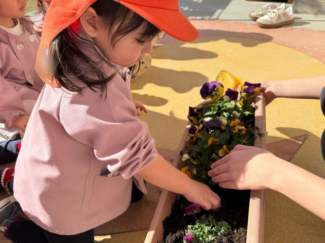 ひよこ組では、ヒヤシンスとチューリップの球根を植えました!「球根」という珍しい言葉を聞いて、不思議そうな表情の子どもたち。球根に触ってみると・・・「たまねぎみたい!」「皮がついているね!」など、いろんなことに気づいたようです!