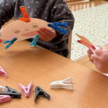 つまむ、引っ張る、握る、ひねるなどの経験ができる遊びを通して、親指・人差し指・中指の3本指の使い方や指先の力加減や調整の仕方、目と手の協応、集中力などを身につけています。このような経験を積み重ねながら、食具の持ち方や衣服の着脱、朝の身支度など身のまわりのことを子ども一人ひとりの発達に合わせて取り組めるようにしています!