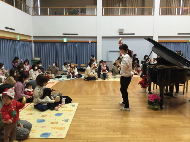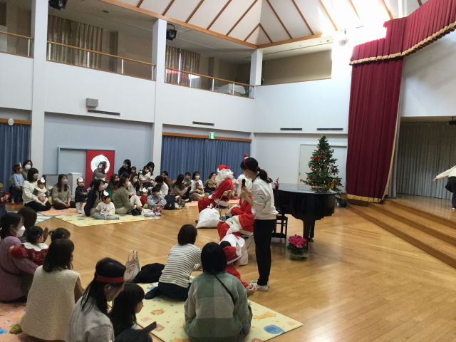 なかよしクリスマス会では、0歳から2歳のお友達45組の参加がありました。
