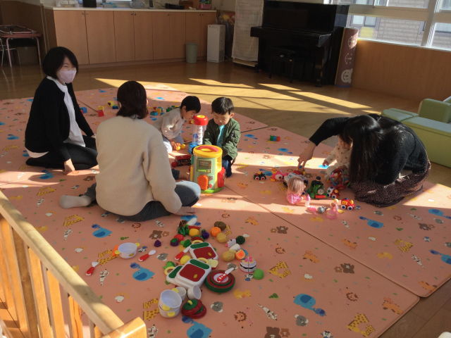 子育て支援室では、おままごとに夢中になって遊んだり、アンパンマンのバスやブロックを気に入って遊んだりする姿が見られました!