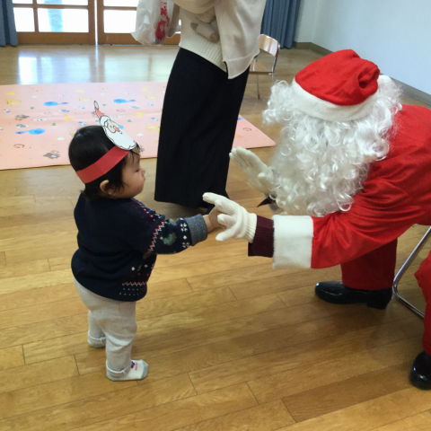 お友達の皆はじーっとサンタさんを見つめてびっくりしていましたね!