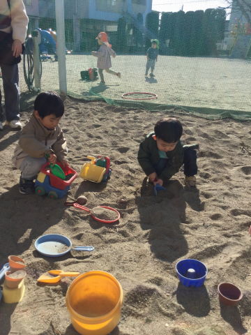 12月のすくすくルームは風も無く冬晴れでした!広い園庭でお母さんとお散歩や追いかけっこ♪