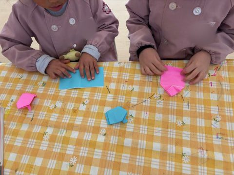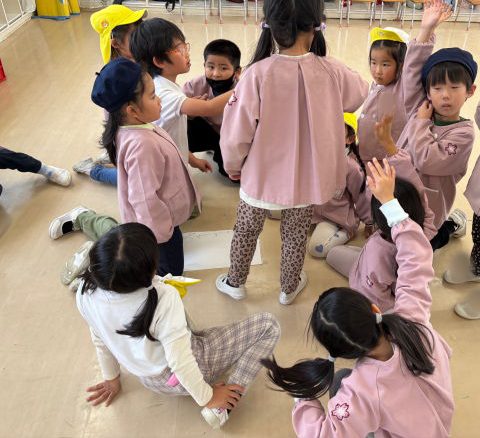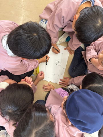 しかし、話し合いを重ねるごとに、自分の意見だけではなく相手の意見を認めたり、少しずつお店屋さんの方向性が決まってきたり話し合いのコツをつかんできた子どもたち。まだまだ衝突することもありますが、それでもしっかり言葉で伝え合い、年長組全員で最後の思い出作りに向けての準備中です!どんなお店屋さんになるのかとても楽しみですね♡