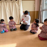 お団子を作るように手を動かすと、「ザラザラって聞こえる!」「何が入ってるのかな?」「お菓子の袋の音?」と興味津々!