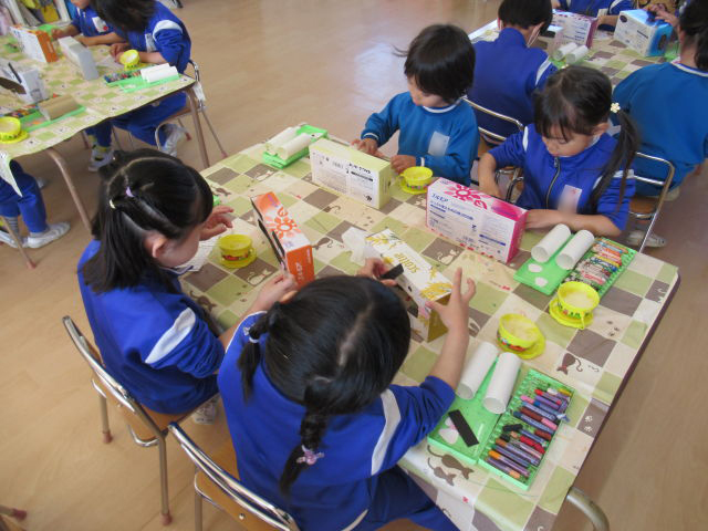 2月3日の節分会に向けて鬼のお面とつのこうばこを作りました。