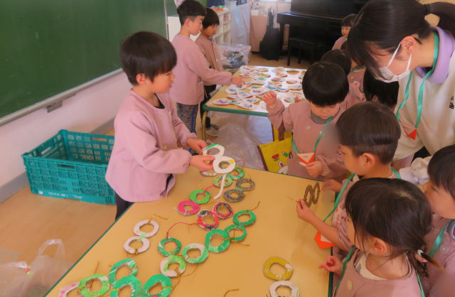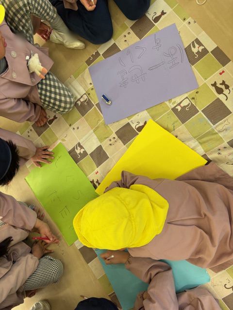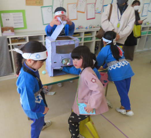 お店屋さんごっこに向けて品物作り、ゲームのルールはどうするかなど着々と準備を進めていた子どもたち。