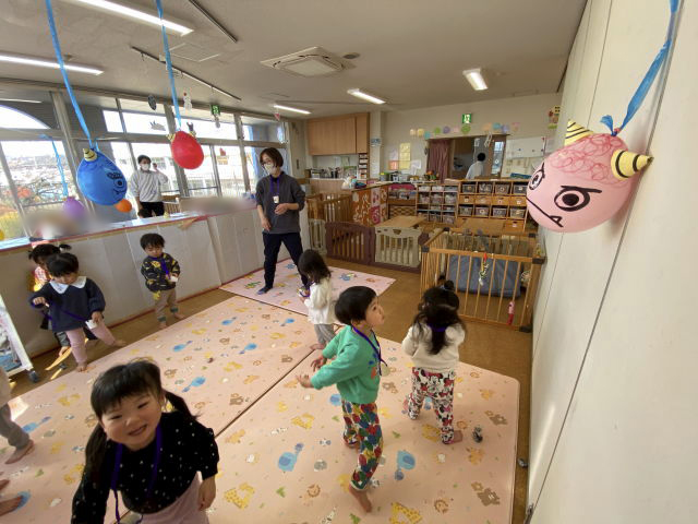 節分会の後は、保育室に戻りみんなで豆まきや、鬼のパンツ干しゲームなど、楽しいゲームをしました♡