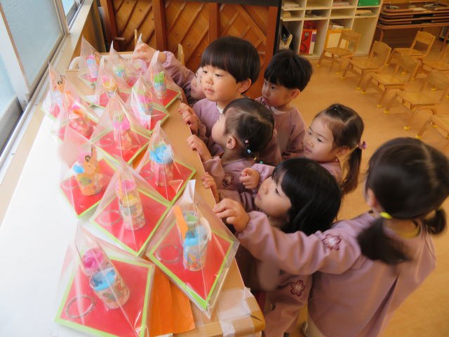 出来上がったおだいりさまとおひなさまを見て、「可愛いね!」「私のはどれ?」と嬉しそうに眺めていた子どもたち。お家に持ち帰る日を楽しみにしていてくださいね!