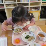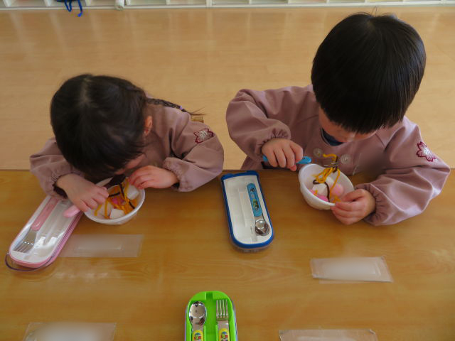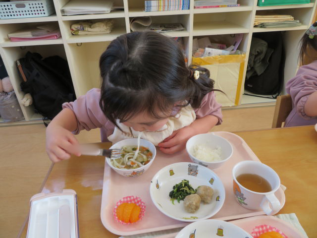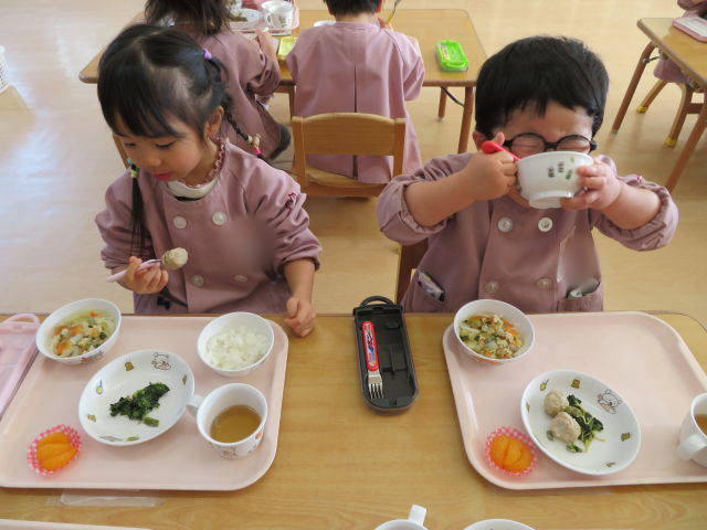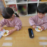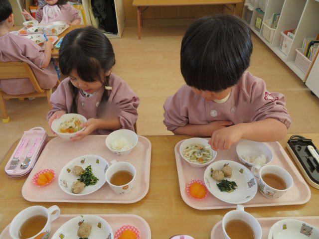 「ぼくはトミカのおはしセットなんだー!」「わたしのはマイメロちゃんだよ!」とお友だちとお話しながら楽しい給食の時間を過ごせたようです。