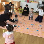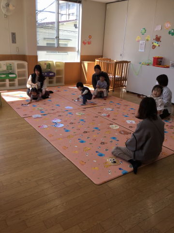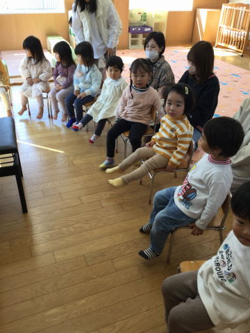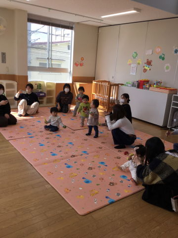 うさぎ組では、ふれあい遊びの後、手遊び・紙芝居を見ました。