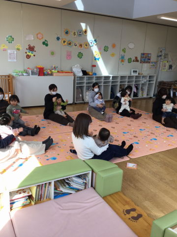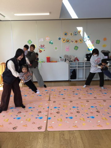 ふれあい遊びの後は、アイアイの親子ダンスをして盛り上がりました!!紙芝居・あんぱんカルタを楽しみました。