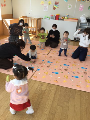 りす組では、果物マラカスでリズム遊びを楽しみました♪