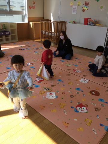 この1年でハイハイしていたお友達が活発に歩くようになったり、寝ていたお友達もつかまり立ちができるようになったりと成長が大きいりす組さんでした。