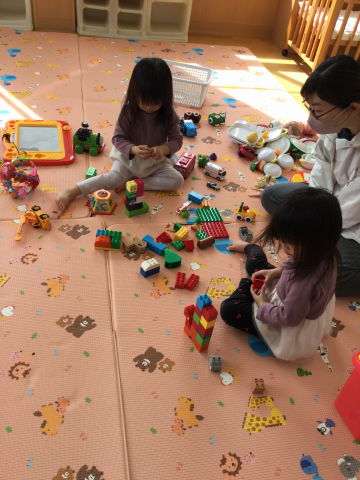 保育室でも、メルちゃんのお人形にご飯をあげたりブロックを組み立てたり、好きな遊びを見つけて楽しく遊んでいましたね♡
